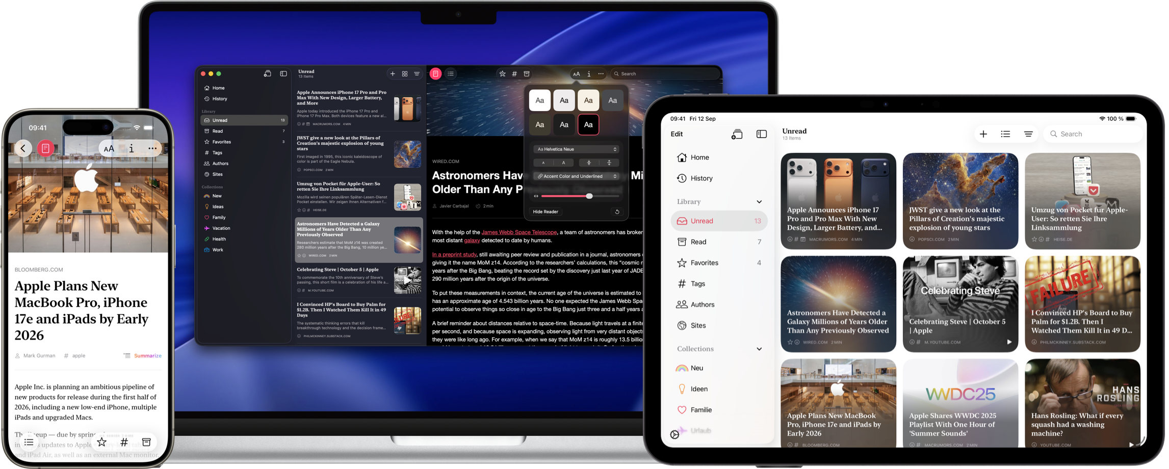 Beautifully crafted for iPhone, iPad, and Mac — seamlessly integrated into the system with a modern interface that feels right at home.