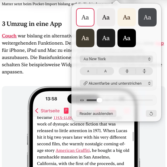 Couch extracts the main article content from web pages, removing ads, pop-ups, and clutter to create a clean Reader View. Multi-page articles are automatically combined into a single, seamless reading experience.